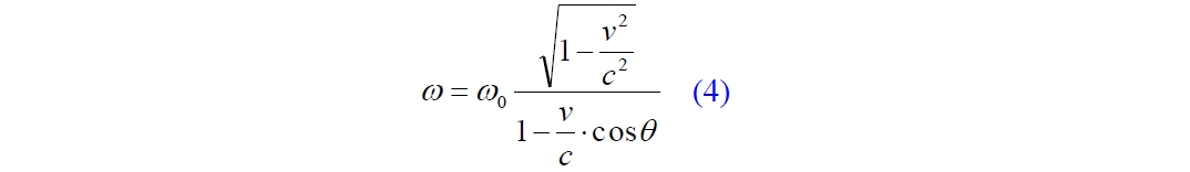 где скорость света, скорость источника относительно приёмника (наблюдателя), угол между направлением на источник и вектором скорости в системе отсчёта приёмника. Если источник радиально удаляется от наблюдателя, то , если приближается, то . Если пренебречь малыми по v/c второго порядка, то релятивистская формула сводится к классическому эффекту Доплера" [8].