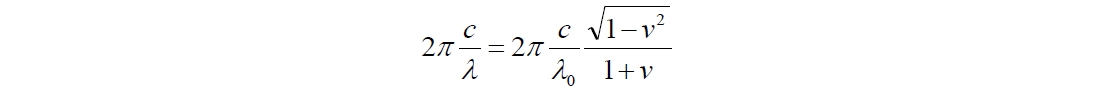 Здесь ω – это угловая частота ("частота волны"), которая к космологии имеет, очевидно, косвенное отношение. Непосредственно в этом уравнении не просматриваются ни расширение пространства Вселенной и скорости удаления галактик друг от друга, ни скорость линейного удаления источника и получателя излучаемой волны. Похожие уравнения приводятся и в других изданиях [8; 3].