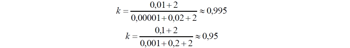 Погрешность вычисления скорости с её завышением при таком отбрасывании и значении z = 0,1 составляет 5%: