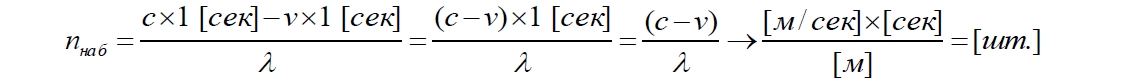 Очевидно, и не требует отдельных доказательств, что измеренная длина волны для неподвижного наблюдателя равна излученной длине волны λизл. В этом случае приёмник, наблюдатель зафиксирует количество колебаний, равное: