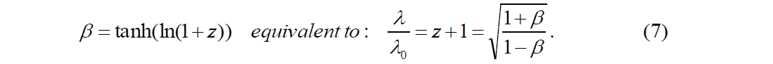 и использовать его для подстановки в уравнение (4), рассматривая движение света и объектов вдоль одной линии, при котором θ = π (источник и приёмник удаляется друг от друга), и традиционно приняв с = 1, получим: