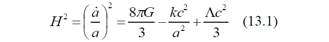Это уравнение и собственно масштабный фактор и его производная по времени относятся ко всей Вселенной в целом, описывает каждую точку его пространства. В наблюдательной астрономии у них есть физические эквиваленты: конкретные дистанции между объектами (например, в световых годах) и скорости убегания (например, в долях от скорости света). Эти эквиваленты, соответственно, относятся только к этим двум объектам. В дальнейшем мы не будем акцентировать внимание на отмеченных особенностях, а просто будем подразумевать их тождество. В приведённой записи имеется в виду некоторый нулевой момент времени, когда масштабный фактор был ненулевым, равным некоторому начальному значению a0. Соответственно, эти два эквивалентных подхода имеют и эквивалентные уравнения: