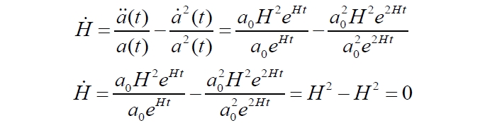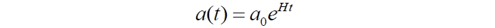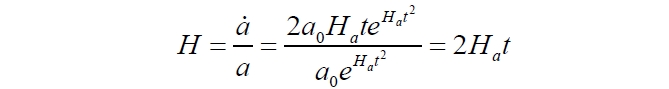 И, действительно, мы получили параметр Хаббла, явно убывающий во времени. При этом произведший его масштабный фактор растёт. Что же получилось? Масштабный фактор растёт, а параметр Хаббла убывает, то есть, ускоренно расширяющейся Вселенной соответствует убывающий масштабный фактор. Но здесь мы вновь укажем на неправомерное отождествление "расширяющаяся" Вселенная и "ускоренно расширяющаяся" Вселенная.