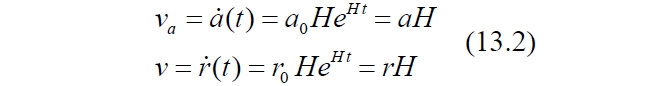 Смысл коэффициента – это длина, например, стандартного метра r0 в пространстве с масштабным фактором a0. Дифференцированием находим и такую же связь между скоростями изменения этих величин, представляющую закон Хаббла: