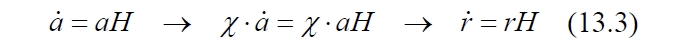 Видим, что параметр ускорения отрицательной, что и означает замедленное ускорение расширяющейся Вселенной. Было бы интересно определить параметр космологического ускорения для уравнения (13.1),