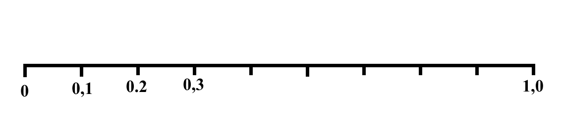 На рисунке видно, что первая цифра после нуля будет отличной от нуля, единица будет только после точки 0,1 отрезка. На интервале от 0 до 0,1 содержится счетное (пока оспариваемое) количество точек. Во всяком случае, это не одна, не миллион и даже не гугл точек, равный 10100, а в бесконечное число раз больше. У всех этих чисел первой цифрой после запятой будет ноль. Следовательно, искомое число пока находится вблизи нулевой точки, в самом начале отрезка [0, 1].