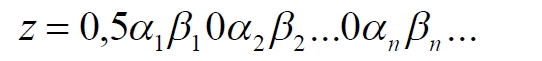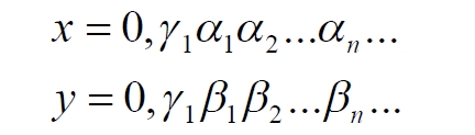 Вот теперь-то каждая из этих точек уже обязана найти своё соответствие на линии. Но возникает другое противоречие. Координаты всех точек квадрата и линии – целые натуральные числа. А здесь мы получили числа дробные, поэтому отождествлять эти индексы с точками линии мы не имеем права. Зато мы обнаруживаем ту самую загадку метода Кантора для отрезка [1, 0]. Фактически индекс формируется методом, схожим с умножением двух чисел. В нашем случае это соответствие должно выглядеть примерно так: