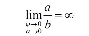 Здесь знак неточного равенства взят из предположения, что отрезок b приблизительно равен длине дуги. Это не точное равенство, но в средней части окружности отрезок и дуга отличаются друг от друга незначительно, в конечное число раз. Теперь найдем предел этого отношения, когда угол между двумя проецирующими прямыми стремится к нулю: