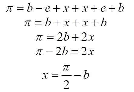 Составляем баланс углов в треугольнике с искомым углом x: