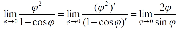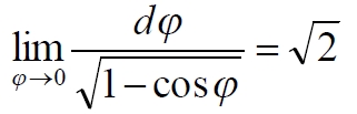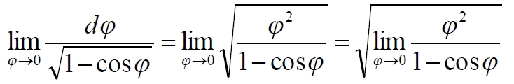 В точке φ = 0 подынтегральная функция обращается в неопределённость, деление нуля – dφ на ноль. Попробуем разрешить эту неопределённость. Поскольку мы производим численное интегрирование, то эта точка соответствует конечным, компьютерным значениям дифференциала и функции φ = dφ =0, то есть, неопределённость 0/0