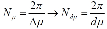 На рисунке видно, что две плоскости, одна из которых – плоскость X0Y, вырезают на сфере "апельсиновую дольку" с углом dμ. На её поверхности, на "кожуре" ещё две плоскости с углом между ними dφ вырезают участок площадью ds. Можно заметить, что все "апельсиновые дольки" равны друг другу и не зависят от собственного угла μ, поэтому мы приняли его равным dμ. Поэтому нам достаточно рассмотреть только одну из них и затем умножить на число этих долек. Число долек определяется в свою очередь от их ширины: