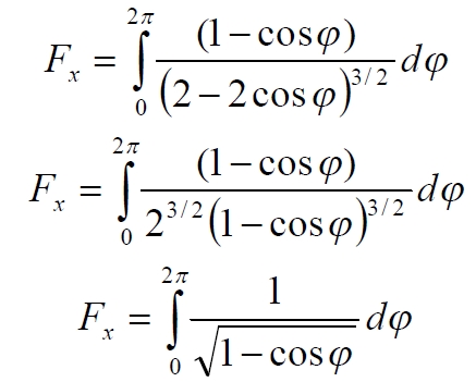 Вычисляем значение силы для каждого значения Rx или значения k. Очевидно, что ни одно из значений силы, кроме k = 0, не равно нулю. При этом значении интеграл упрощается до элементарного