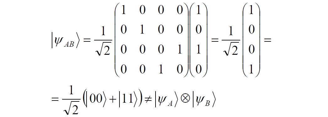 Знак неравенства означает, что на выходе получено запутанное (белловское) состояние фотонов: управляющего и управляемого, поскольку такое состояние не может быть факторизовано, то есть, не может быть представлено как тензорное произведение состояний независимых фотонов. Из этого сразу же следует, что входной управляющий сигнал на выход в неизменном виде все-таки не прошёл.