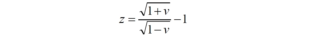 Как видим, расхождение скоростей на рисунке существенное. Скорость, определяемая простым умножением красного смещения на скорость света получается почти в 2 раза больше реальной скорости объекта. Известно, что приблизительное равенство cz ≈ v выполняется только при малых значениях красного смещения, z < 0,1.