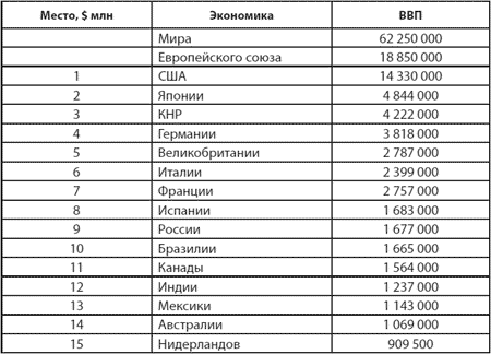 Таблица 1.2. Крупнейшие экономики мира по итогам 2008 года.