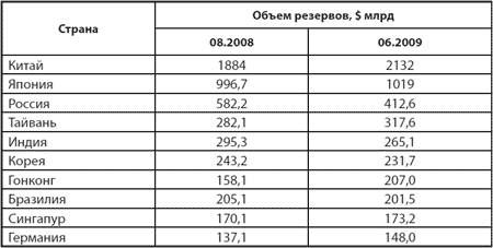 Таблица 1.3. Государства с наибольшими золотовалютными резервами в 2008–2009 годах.