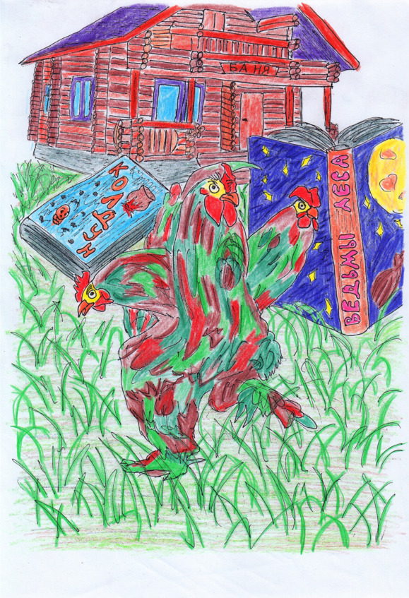 – Хорошая курочка получилась! Так и хочется зажарить тебя на обед, всё толку больше будет. Может так и сделать? – заколдованный Горыныч, услышав такое заявление, сделал несколько шагов назад, а потом бросился обнимать ноги колдуна.