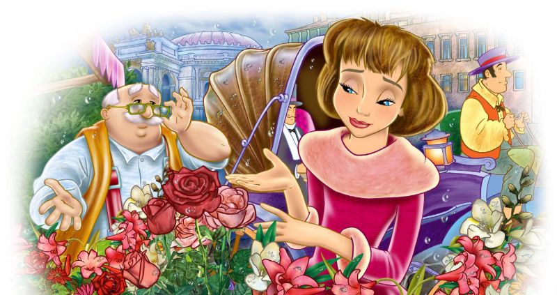 У лотка торговца цветами девушка долго выбирала, какой букет она возьмёт с собой в театр. В плетёных корзинах из ивовых прутьев можно было найти товар на любой вкус – строгие гвоздики, франтоватые пионы, милые гортензии, гордые георгины, скромные маргаритки… Всем остальным цветам она предпочла Пурпурную Розу. В ней было что-то торжественное и праздничное – так день рождения отличается от всех остальных дней в году. Когда Эльвира посмотрела на Пурпурную Розу, ей даже показалось, что цветок прошелестел еле слышно: «Возьми меня!» Девушка протянула руку, роза затрепетала от радости и словно потянулась ей навстречу. Эльвира обернула цветок в тонкую бумагу и поспешила в театр.