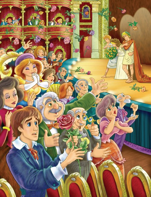 Билеты в партер уже раскупили, и ей пришлось подняться на верхний ярус балкона, а пурпурную красавицу Эльвира положила на покрытый плюшем барьер. Целый вечер девушка и Роза наслаждались прекрасной музыкой и удивительными голосами певцов. Розе была в новинку праздничная атмосфера театра: после того как её сорвали, цветок окружала лишь тесная корзина цветочника, шум улицы да звон монет…