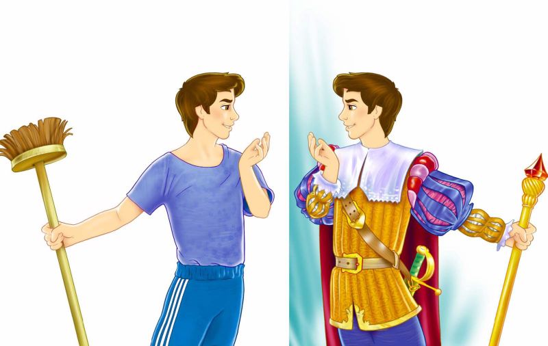 Спортивный костюм Павла превратился в зеркале в белоснежную рубаху с кружевами и тёмно-синие шёлковые брюки.