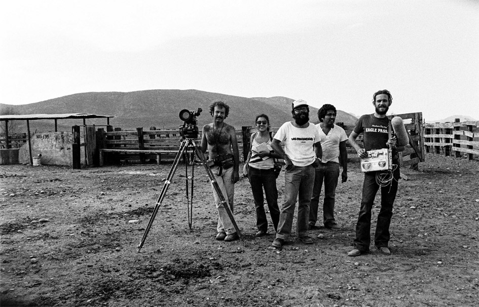 Alejandro Gamboa, Coca Gaxiola, Rafael Montero y Enrique Kulhmann en la comunidad kikaapoa (kikapú) de El Nacimiento, Múzquiz, Coahuila. Foto fija del documental “El eterno retorno: testimonios de los indios kikapú”.