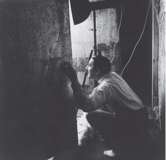 Археолог Говард Картер заглядывает в двери одной из золотых усыпальниц Тутанхамона, которые никто не тревожил в течение более 3000 лет (фото египетской экспедиции, Музей искусств Метрополитен)