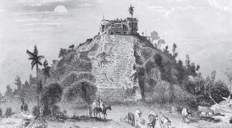 Рис. 1.1. Археолог XIX века был искателем приключений. На литографии художника Фредерика Катервуда, сопровождавшего Джона Ллойда Стефенса, изображена крепость в Чичень Итце в Мексике