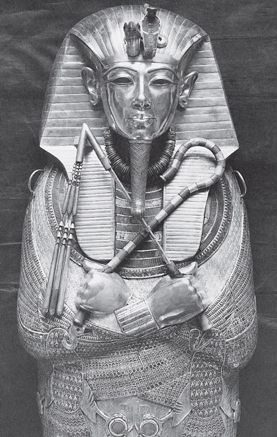 Скоро дверь открыли. Изумленные Картер и Карнарвон прошли через «прихожую» гробницы фараона. Они прикоснулись к золотым погребальным четкам, восхитились изумительно инкрустированными деревянными сундуками и осмотрели стоящие возле стен колесницы. Золото было повсюду – им были покрыты деревянные статуи, им были инкрустированы троны и ящики, даже детские скамеечки (Ривз, 1990). Скоро Тутанхамон стал известен как золотой фараон, а археология стала наукой захороненных сокровищ и царских гробниц (рис. 1.2).