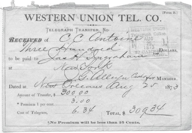 Рис. 2.1. Перевод Western Union, совершенный в 1873 году