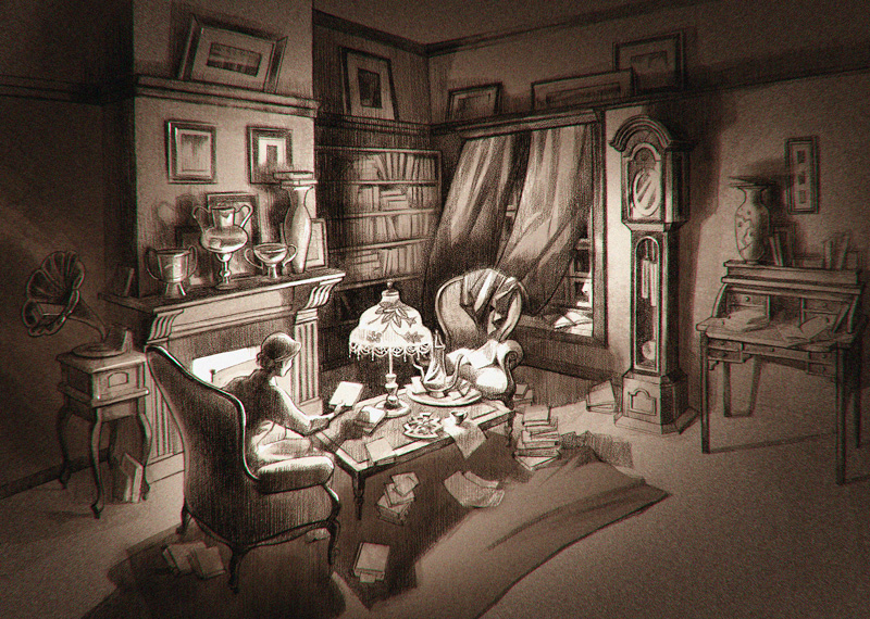 В библиотеке никого не было. С камина отсвечивали в отблесках пламени чемпионские кубки. Шторы тихонько шевелил сквозняк. Пахло табаком и кофе.