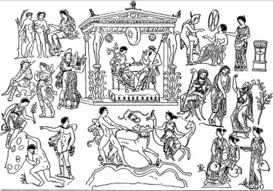 Боги и герои, изображенные на греческой вазе