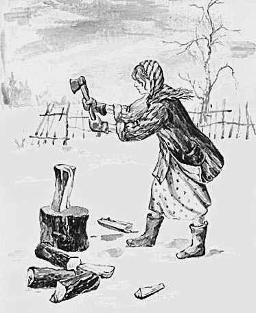 Понятно, что принесенные из леса части стволов нужно было во дворе распиливать на чурки, чурки расколоть на поленья, а поленья складывать в поленницы, кубиками крест-накрест, чтобы сохли. Возня с дровами занимала все наше время в короткие зимние дни.
