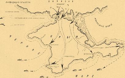 Важнейшей задачей Красной армии было полностью уничтожить Врангеля и освободить Крым до наступления сильных морозов. Для прорыва в Крым перед Красной армией было три пути – Перекопский перешеек (шириной до 8 км), Чонгарский перешеек и Арабатская стрелка, окаймляющая западную часть Азовского моря. Наибольшую возможность для маневрирования представлял Перекоп. Именно сюда был нацелен главный удар командования южным фронтом. Но так как подступы и к Перекопу и к Чонгару были белыми сильно укреплены, т. Фрунзе для обеспечения удара наметил переброску части войск по Арабатской стрелке на юг с последующим ударом на Крымский полуостров во фланг и тыл белым. Как раз в этом районе у противника были малочисленные части. При содействии нашей довольно мощной азовской флотилии, стоявшей в Таганроге, намеченный командованием на 7–8 ноября маневр этот был бы сравнительно легко осуществлен. Но ударившие в эти дни сильные морозы сковали наш флот в Таганрогской бухте. В то же время действовавшая в южной части Азовского моря флотилия белых сохранила полную возможность маневрировать, что позволяло ей подходить к Арабатской стрелке и расстреливать все двигавшиеся по ней красные части. Поэтому от обходного движения пришлось отказаться. Осталась одна возможность – прямой атаки на Перекоп и Чонгар. Такое решение и принял М. В. Фрунзе.