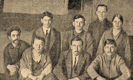 Группа коммунистов, состоявших в подпольной партийной организации в Екатеринбурге. По приговору колчаковского военно-полевого суда были расстреляны в апреле 1919 г. Слева направо сидят: тт. М. Ш. Брод, М. О. Авеиде, А. Я. Валек, В. А. Вожаков; стоят слева направо: О. М. Буздес, В. А. Голубь, Ф. О. Вальтер, Е. К. Коковина.