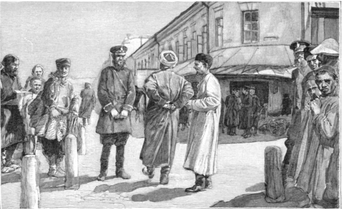 Казанская пристань – это настоящий кусочек Азии. На берегу суетились грузчики – татары, нищие, бабы в розовых, желтых или зеленых юбках. Кого тут только не было! Вокруг прилавков с разложенными на открытом воздухе яркими плодами, у странных транспортных средств с разноцветными дугами – диадемами над головами лошадей, у понтонов, перед магазинами, вблизи кабаков копошились люди – кто в овчинных шапках, кто в черных и синих кафтанах, в серых от грязи тулупах, да еще в тюбетейках или фуражках.