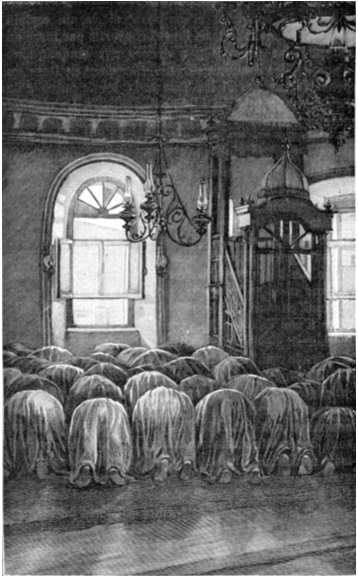 Магометанское духовенство тоже восприимчиво к нашим идеям, и некоторые его представители даже занимаются наукой. В 1877 г. один мулла докладывал об истории Булгара и Казани на Казанском археологическом съезде120. В связи с этим расскажу одну историю. Когда в присутствии месье Миславского я фотографировал около одной мечети, передо мной неожиданно возник ее священнослужитель. Узнав, кто я такой и зачем приехал, он пригласил меня побывать завтра в мечети, чтобы запечатлеть моление – мол, парижанам это будет интересно. Но ведь закон Магомета запрещает изображать лица людей, поэтому они вряд ли захотят сфотографироваться. И тогда мулла – а это был образованнейший человек, знающий, как во Франции относятся к его единоверцам – нашел остроумный выход, предложив заснять молящихся сзади, что я и сделал.