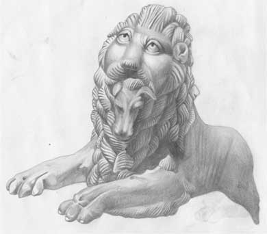 Как бы то ни было, загадочный лев, ухвативший пойманную лошадь за шею, скорее всего, одна из парных фигур, и как многие другие персонажи этой книги, он все еще хранит свою загадку и возможно никогда не воссоединится со своим напарником, что останется на долю археологов, историков, писателей и просто фантазеров.