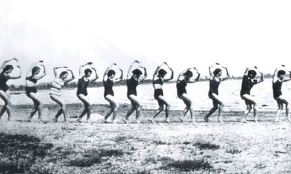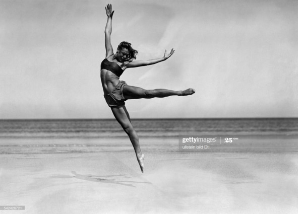Потрясающтй снимок 1928 года, первоначально опубликованный в Berliner Illustrierte Zeitung. На нем изображена ученица немецкой школы современного танца, под руководством Ютты Кламт. Девушка занимается гимнастикой на берегу Балтийского моря.