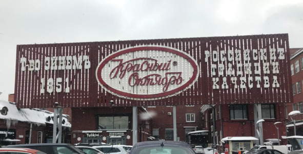 Шагаем по мосту. Видим надпись крупными красными буквами на старинном красном кирпичном сооружении, выделяющемся из комплекта строений – это фабрика «Красный Октябрь». Шаг за шагом мы приближаемся к месту великолепного производства бесподобных конфет. Переходим по мосту над рекой и сворачиваем по лестнице направо по дорожке, ведущей к входу в «Красный Октябрь».