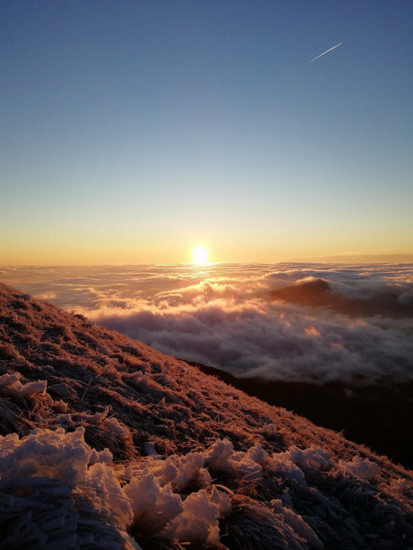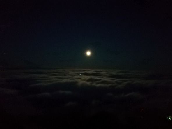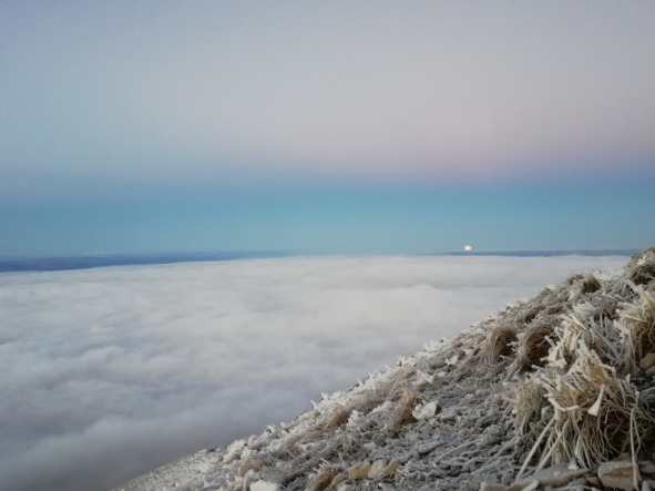 22 го посетил свой ДР в узком семейном кругу. И вот уже 2 часа ночи 23 ноября. Администратор хостела крутит у виска в след, как оказалось, Прекраснейшей юной ВОлшебнице (сам не знал кого веду – она трудилась в суде и в профиле не было фоток) и уже через каких-то четыре часа мы выскакиваем из молока почти у самой вершины Бештау (может это и было купание в молоке по Коньку-Горбунку). Мама моя дорогая! Следующий час стал одним из самых замечательных в моей жизни. Пейзажи просто зареальные. Из серии – «Увидеть и умереть от СейЧАСТЬЯ» Фоты, сделанные на телефон, конечно не передадут эмоций, но просто …!!! Попробую визуализировать словами. Поначалу, над белоснежным ковром облаков одиноко сияла полная луна (доп. Бонусом было полнолуние).