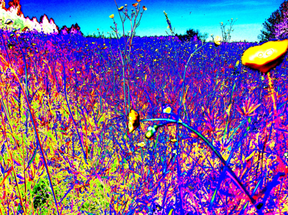 Солнце уже садилось и вдруг из травы стали вылетать светящиеся комочки. Внутри которых явно обнаруживалась фигурка.