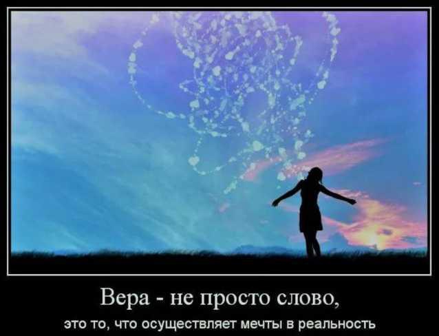 Вера – это настройка на высшее начало, объединение с ним, это взлет в небо или наполнение им себя. Как сказал Лев Толстой (1828–1910): «Смысл веры не в том, чтобы поселиться на небесах, а в том, чтобы поселить небеса в себе.»