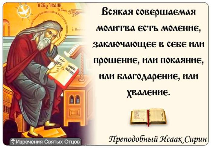 «Молитва, – говорит византийский философ, игумен синайского монастыря преподобный Иоанн Лествичник (525–606), – есть соединение человека с Богом, мост для перехождения искушений, стена, защищающая от скорбей, бесконечное делание, источник добродетелей, виновница дарований, пища души, просвещение ума, укрощение гнева, указание надежды…»