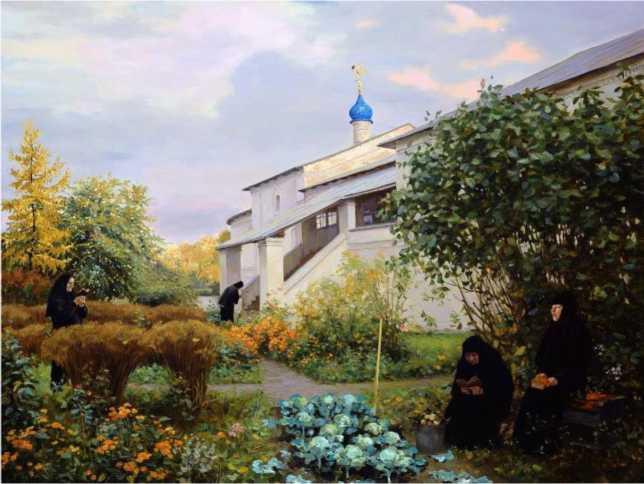 А старая монахиня (сидя, читает) давно уже вошла в ритм соприкосновения с Евангелием. Поработает руками в монастырском саду, в огороде, и почитает. Поработает и почитает. И читает она уже истово, испытывая удовольствие от того, что Слова Писания проходят сквозь нее, как солнечные лучи. Вся душа прогревается.