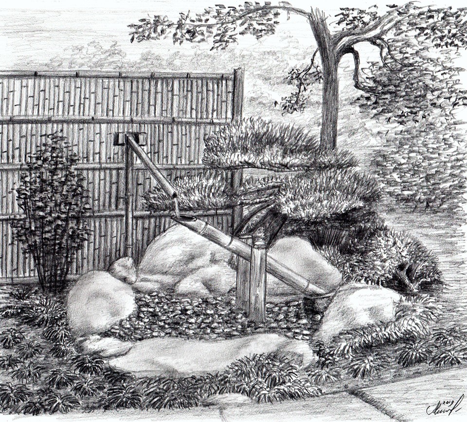 – Вовсе нет. Когда вода наливается и палка ударяется о камень, нежелательные гости пугаются и убегают из сада. Ещё бывают суйкинкуцу. Они музыкальные.