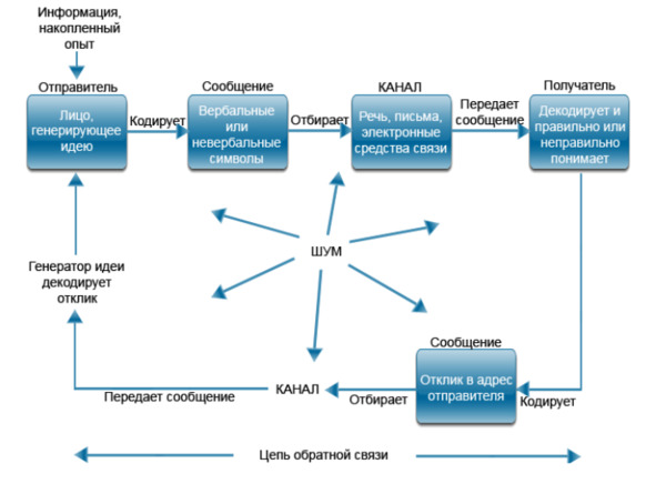 5. . В случае, когда получатель реагирует на коммуникации отправителя ответным сообщением, возникает обратная связь. При отсутствии реакции процесс коммуникации носит односторонний характер; обратная связь означает, что сообщения идут в обе стороны. Обмен информацией можно считать эффективным, если получатель продемонстрировал понимание идеи через обратную связь. Например, произвёл действия, которых ждал от него отправитель. Обратная связь