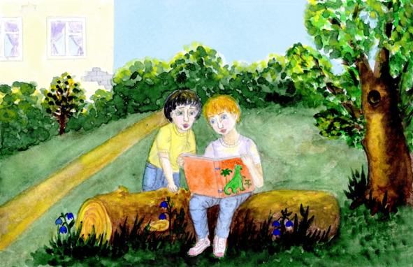 Через миг он уже сидел на бревне напротив меня и восхищённо листал мою книжку, то и дело тыча пальцем в картинки с динозаврами и другими доисторическими монстрами.
