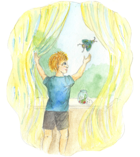 Один раз жук от нас чуть не удрал. Ползёт себе, ползёт, вдруг крылья выпустил, вззззить – и уже на подоконнике. Ладно хоть, Санёк его перехватить успел.