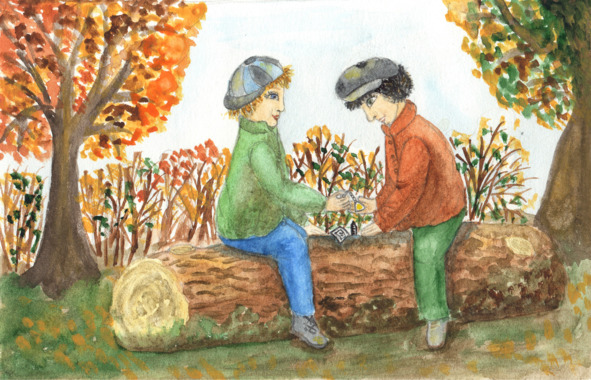 Я вздрогнул от неожиданности и чуть не свалился с бревна. Оказалось, я так увлёкся, что и не заметил, как ко мне из-за спины подошёл какой-то незнакомый мальчишка с такими же взъерошенными волосами, как у меня. Только у меня волосы были светлые, а у него – тёмные.