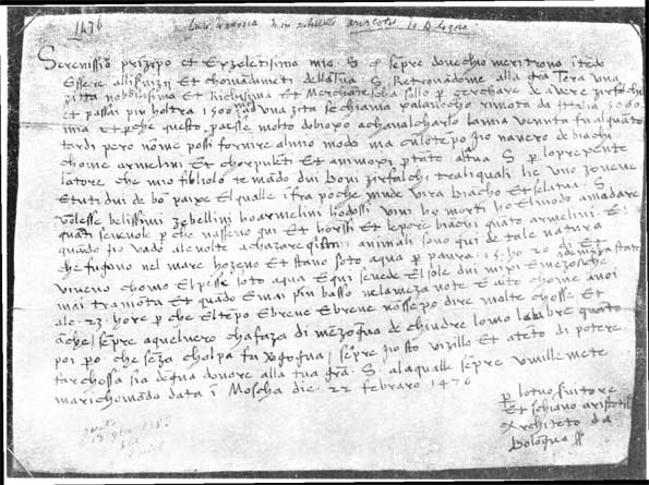 Автограф письма Аристотеля Фиораванти герцогу Сфорца. Государственный архив Милана
